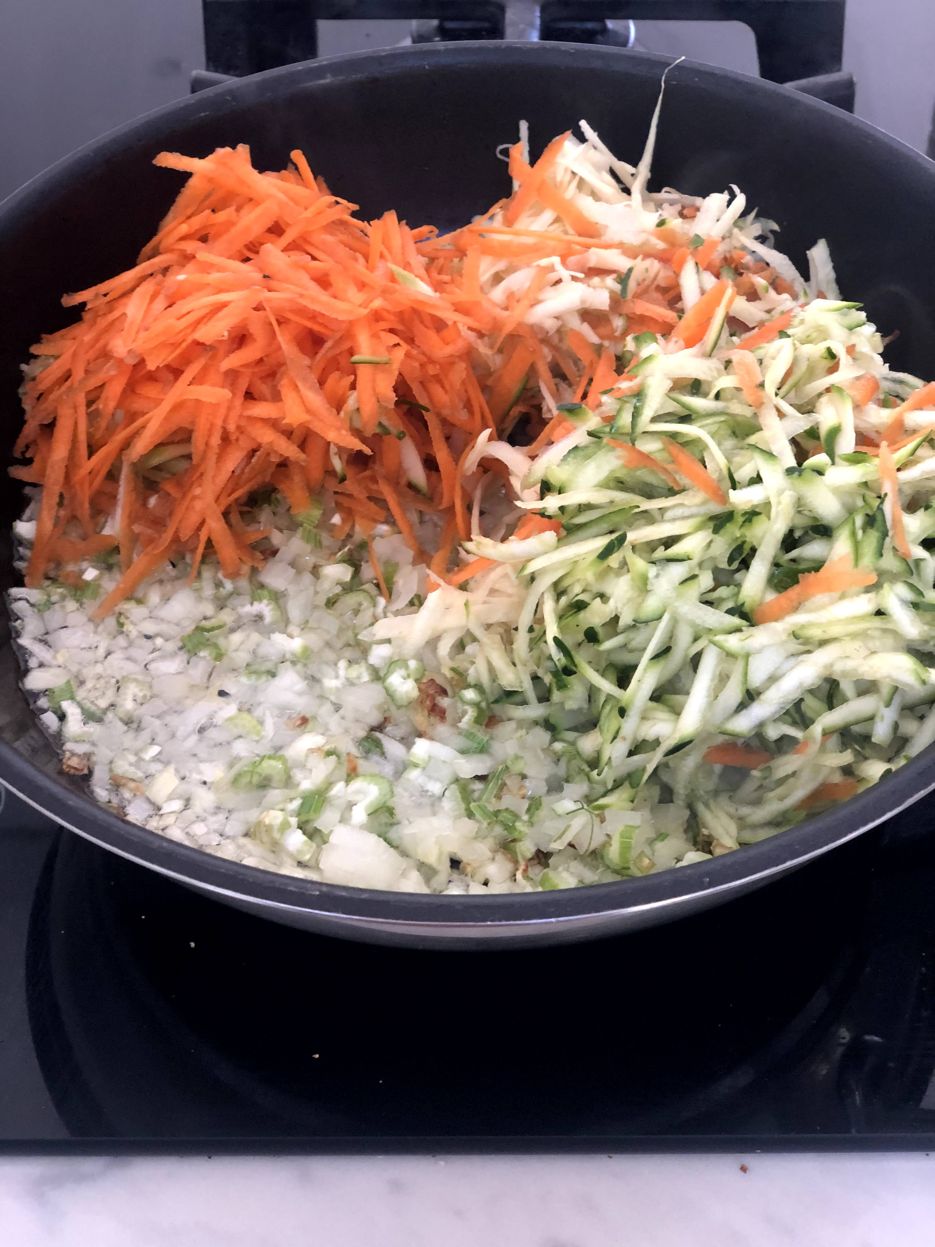 - Sautee veggies in olive oil – to soften and release all moisture.