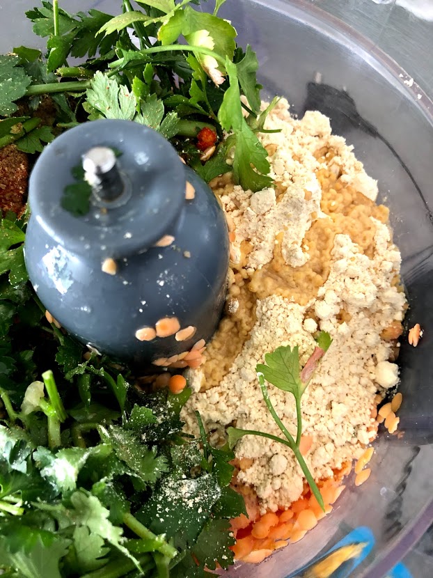 - Place all ingredients for the patties in food processor ( besides Baking powder)