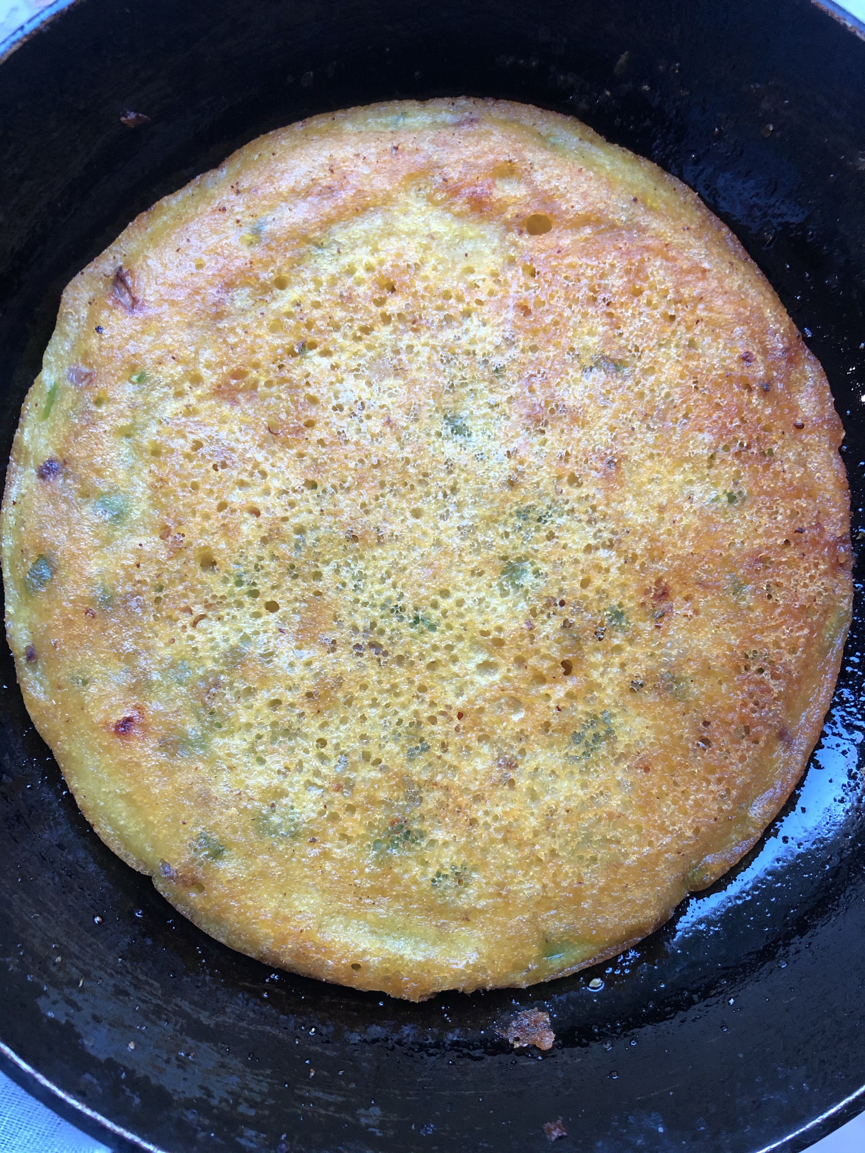 - Cover again to cook further- takes around 7-10 min until firms up , then flip over and cook further , drizzle a bit more oil if required