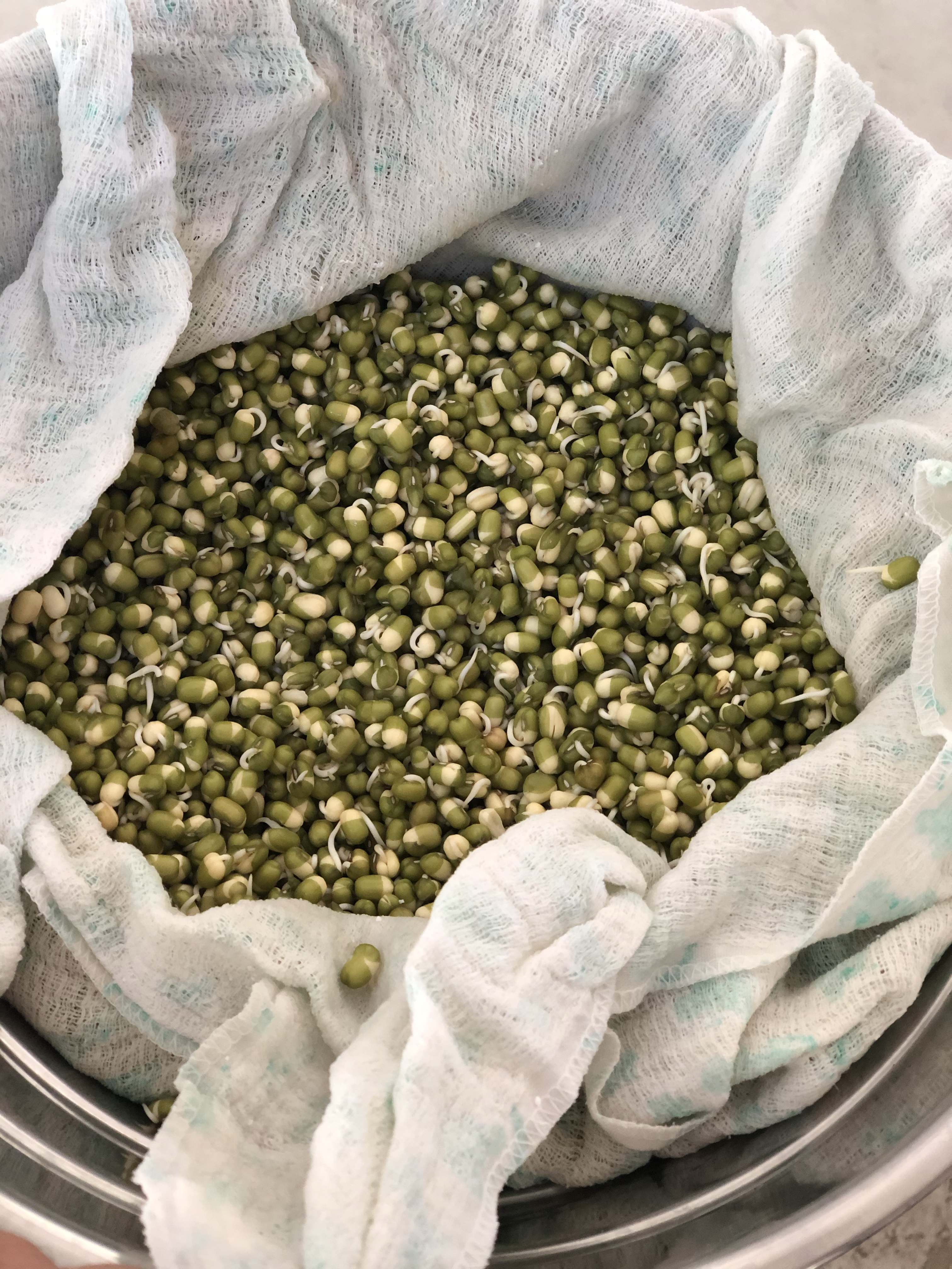 The next day rinse legumes , and place in a dampened cloth / breathable fabric ( like a muslin) place the cloth in a wide dish giving the legumes space. Tuck your legumes in this damp cloth and keep in a warm place.