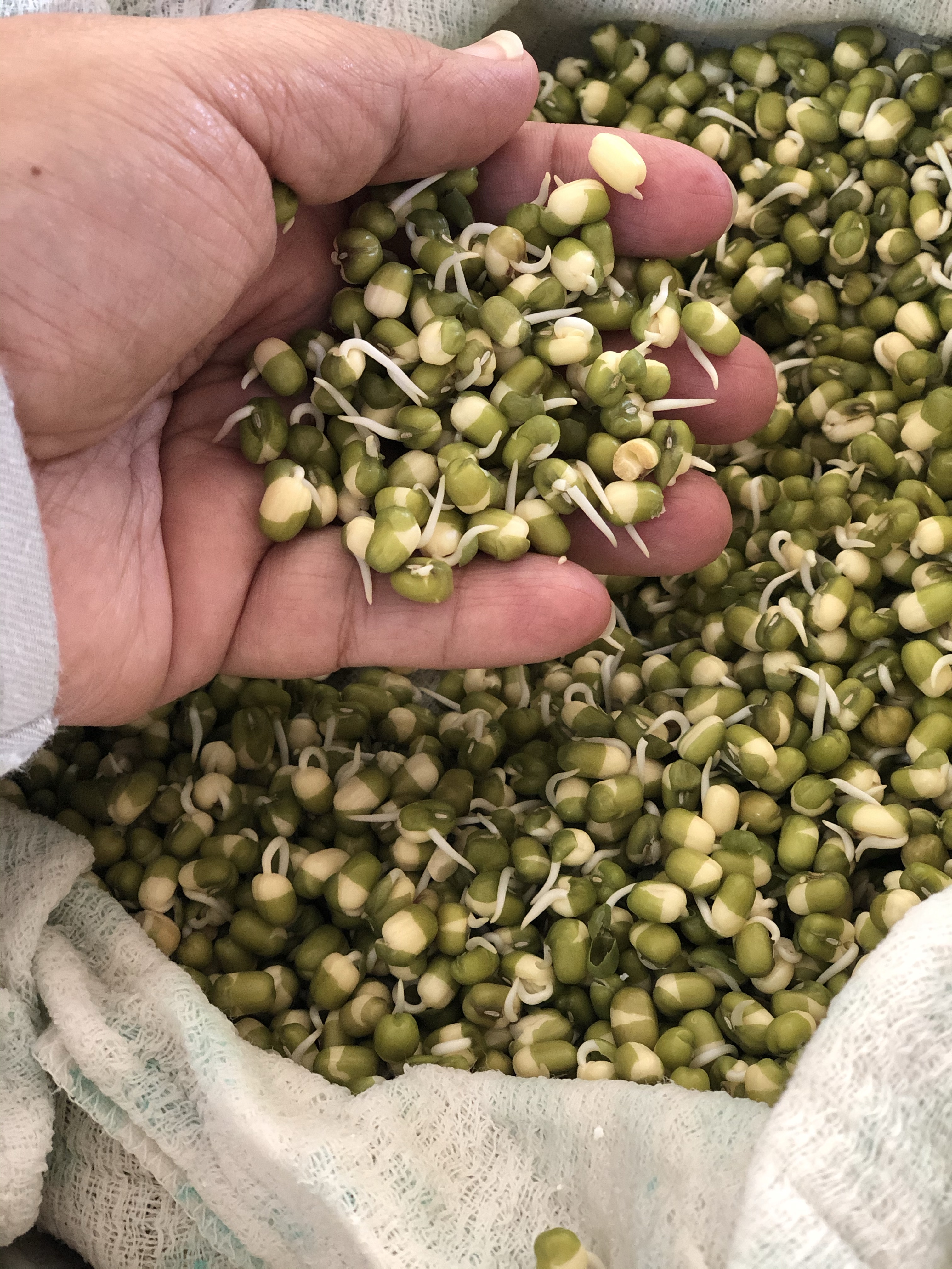 I think the most important points are to allow your legumes to soak overnight allowing them to swell and then thereafter keeping them in the damp cloth in the right position ( your pantry or oven are good options)