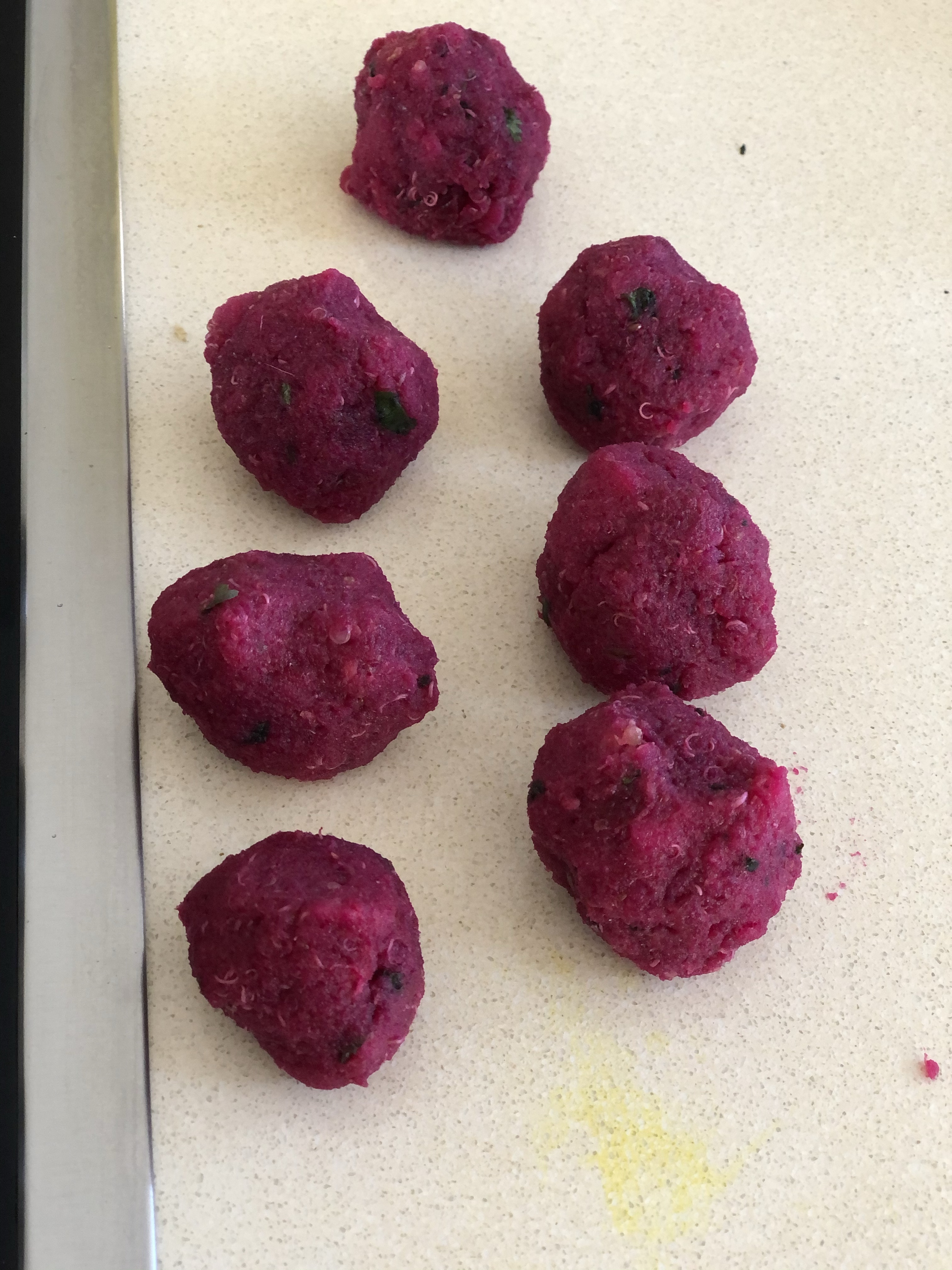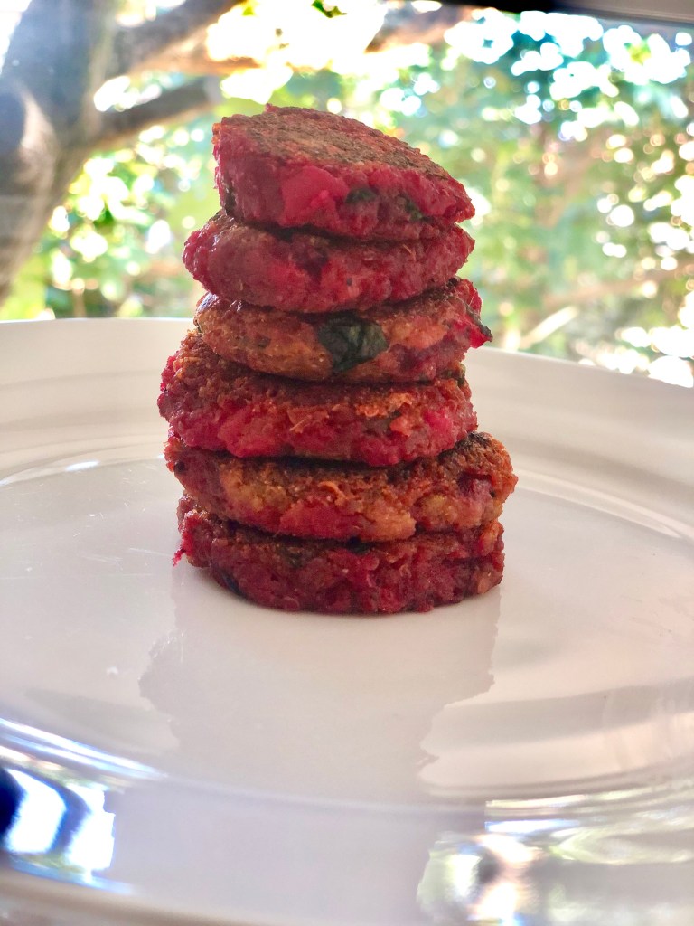 If the amazing color isn’t reason enough to make these…perhaps the healthier ingredients will be. A light meal , snack or a slider they easy to make , delicious and nutritious. Can you imagine them on a platter board next to the Hara Bara , such a feast for the senses.