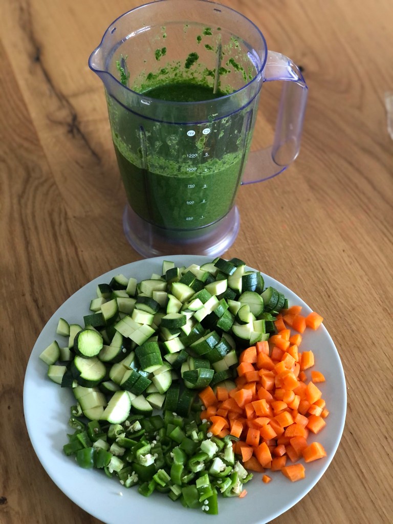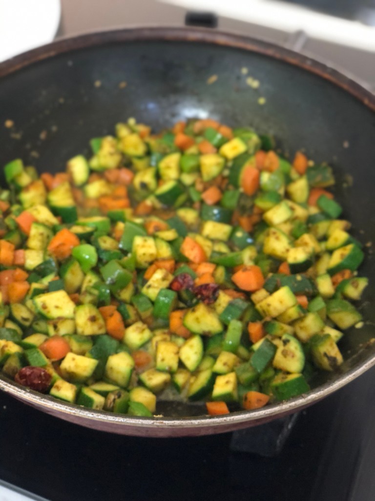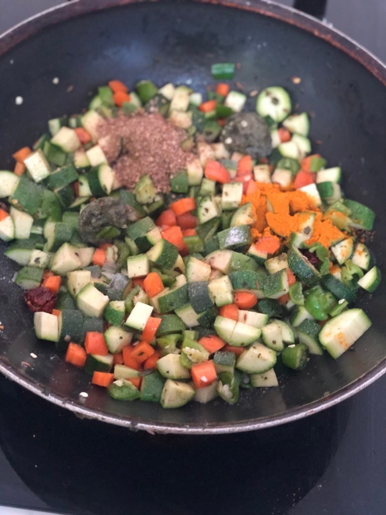 - 2/3 cups chopped vegetables ( Your choice – I used Carrots , baby marrow and green peppers)