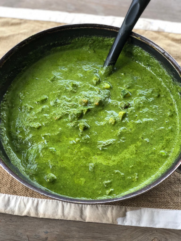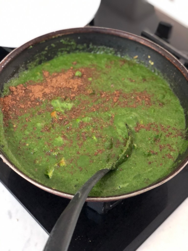 This recipe is my take on a Punjabi dish called Vegetable Hariyali , Hariyali translates to greenary /grass/greens…. and this is what the sauce is all about . It’s like the other famous Punjabi didh , palak ( spinach) paneer , Hariyali gets more green by including mint and coriander leaves too. This gives a brightness and freshness to the dish.