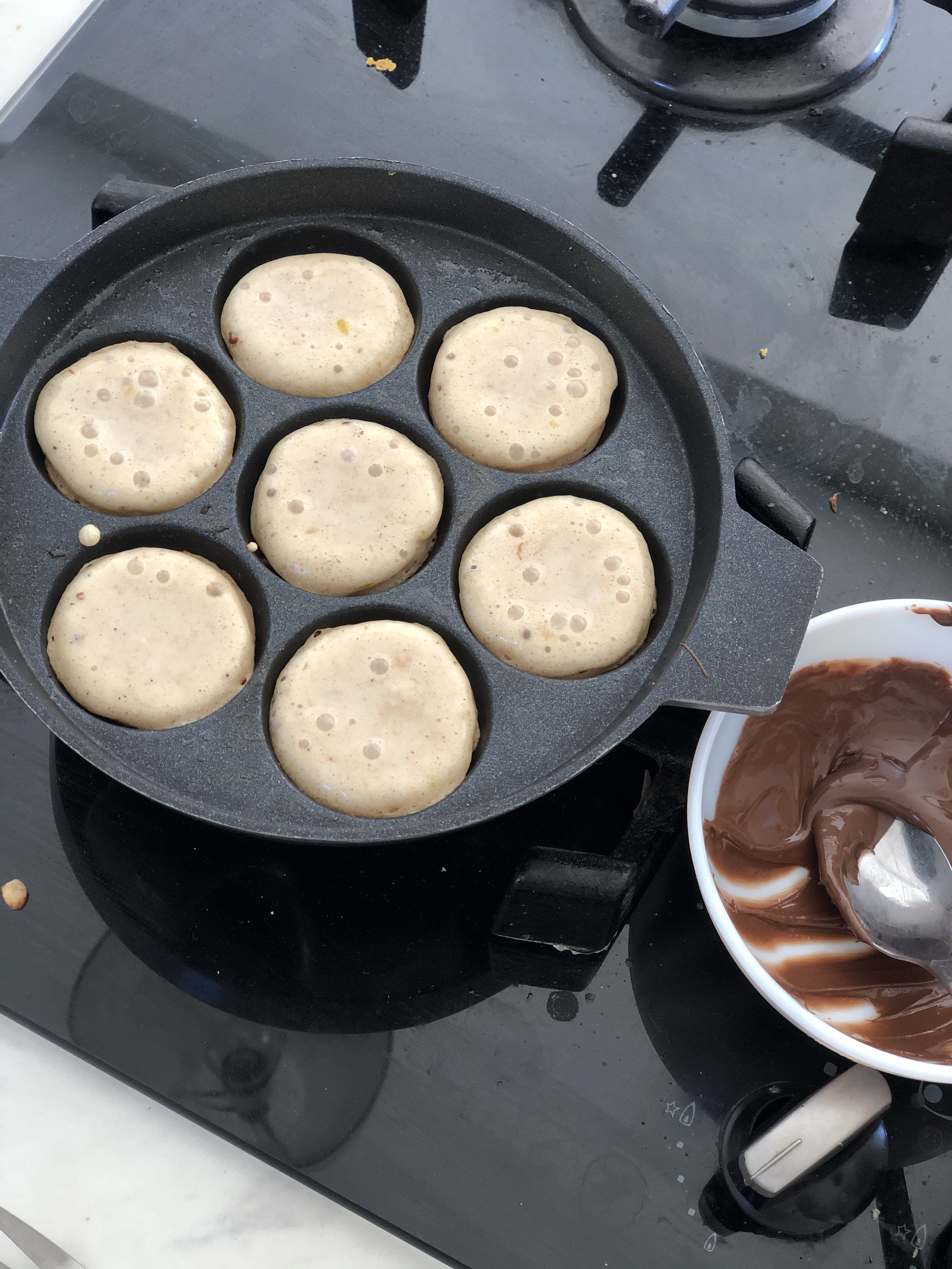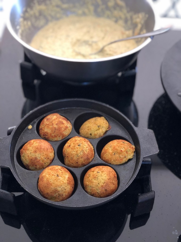 The special Appe pan is a great addition to your repertoire – I’ve used it to make Bhajya type Pakora’s and even Nutella surprise Pancake Bombs . The round moulds are convenient and use very little oil to get a crispy outter. Traditionally made from caste iron , though you do get non-stick versions too.