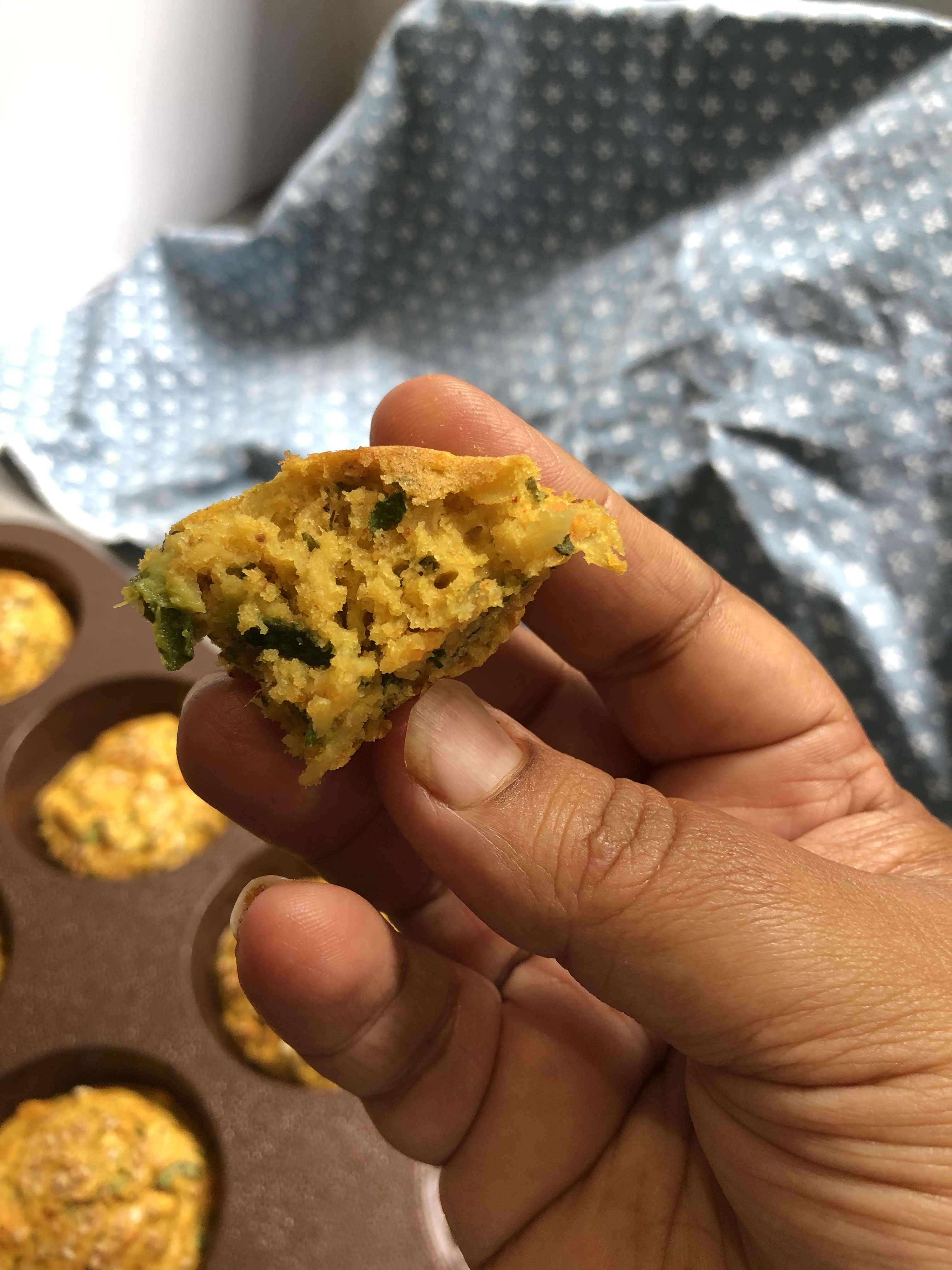 Yesterday I tried something that merged the instant Handvo ( Gujarati baked vegetable with rice/dhal batter ) idea by adding more veggies to the batter- it worked like a charm in fact I tested the same batter in 3 ways – Aape pan , pan fry like a crumpet and baked in the oven… the verdict ‘ Houston, we have a winner’